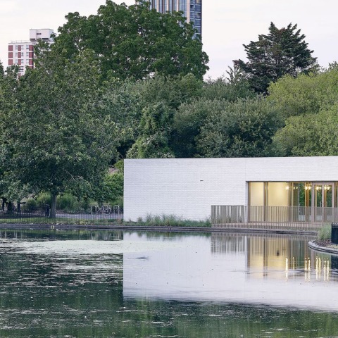 Según Hari Phillips, la forma cóncava del pabellón surgió en respuesta a los caminos serpenteantes y al paisaje sinuoso del que está rodeado. Además del lago, el edificio se encuentra junto al antiguo campo de cricket Southwark Park Oval. "Comenzamos con un volumen y mordisqueamos geometrías circulares, luego pusimos el pabellón en forma alrededor del lago", agrega Phillips.