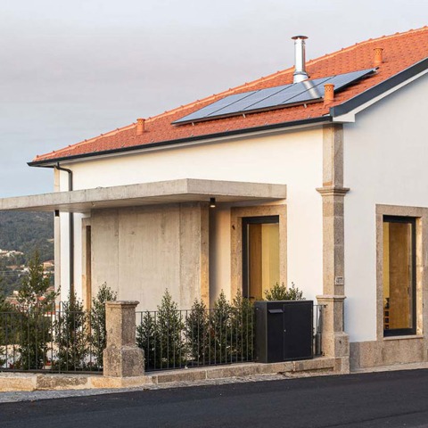 La casa Arco se encuentra en la cima de la ladera, sobre el pueblo de Paredes de Coura. Debido a su ubicación, forma y tamaño, la casa es un elemento destacado que se impone en la experiencia del pueblo.