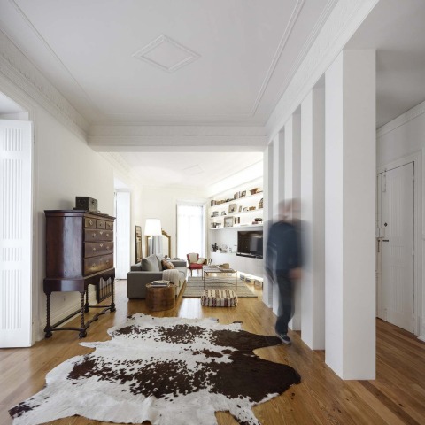 Despoblado y muy degradado, el apartamento, ubicado en el centro de Lisboa, requirió una remodelación total, a través de complejos cambios espaciales que dieron como resultado una residencia moderna.