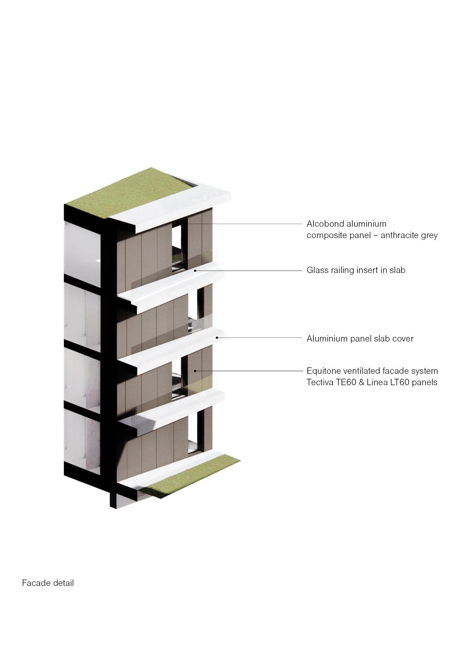 Con el objetivo de reducir emisiones y mejorar la eficiencia energética a largo plazo, el proyecto residencial incorpora un sistema geotérmico abierto, retención de agua de lluvia y cubiertas verdes, garantizando un sistema de calefacción y refrigeración sin combustibles fósiles. Frente a la urgente necesidad de adaptación de las ciudades, «Lake 11» explora cómo la vivienda puede ofrecer densidad y amplitud a partir de un delicado equilibrio entre la innovación, la habitabilidad y la responsabilidad ambiental.