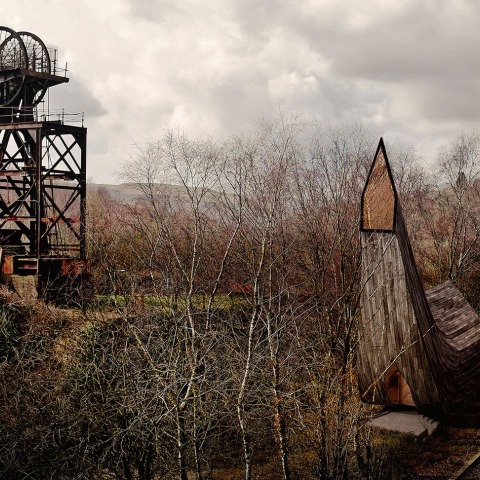 La propuesta ganadora de Kamvari Architects pretende combinar las técnicas tradicionales de carpintería con una forma que imita el movimiento de un tren, una serie de cabañas de madera que parecen grandes dinosaurios. En un extremo, cada estructura se diseña para asemejarse a una cabina tradicional de pino, mientras que el otro extremo es estirado y levantado hacia el cielo.