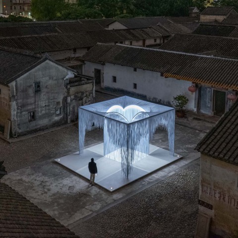 El proyecto continúa con el espacio del patio tradicional Hakka y transforma de manera abstracta la cultura tradicional de la seda en un espacio arquitectónico. Durante el día, cerca de 5000 tubos crean un espacio aislado suave y borroso mientras que desdibuja los fríos edificios de hormigón circundantes, brindando a los visitantes un espacio de meditación donde pueden comunicarse con el cielo. Por la noche, las tiras de luz ocultas en el haz de la estructura dibujan suaves curvas, al igual que el cielo estrellado nocturno, dando a las aldeas Hakka un lugar de esperanza.