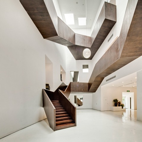 Neri&Hu dan vida a un antiguo edifico a través de una escultórica escalera que recorre los diferentes niveles ofreciendo infinitas visuales de cada espacio.