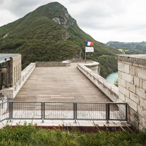 El proyecto resalta su intervención con una geometría sin adornos, que dialoga con el rigor de Fort l'Ecluse, generado para soportar los inviernos más duros. Las delicadas condiciones del sitio en lo alto de una colina y en el corazón de un fuerte, han propiciado la prefabricación y favorecido la noción de técnicas en seco.