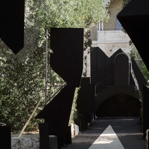 Una cruz negra saluda a los visitantes de la Design Week de Jerusalén, ya que parece suspendida sobre el edificio y el jardín. A medida que los visitantes avanzan y se acercan al edificio, la forma suspendida parece desmoronarse. La marca X percibida en realidad es una acumulación de varias piezas fragmentadas, dispersas por el recinto. Estas piezas, formadas por la proyección distorsionada, yacían en el suelo, las paredes, las escaleras y la fachada de la Casa Hansen.