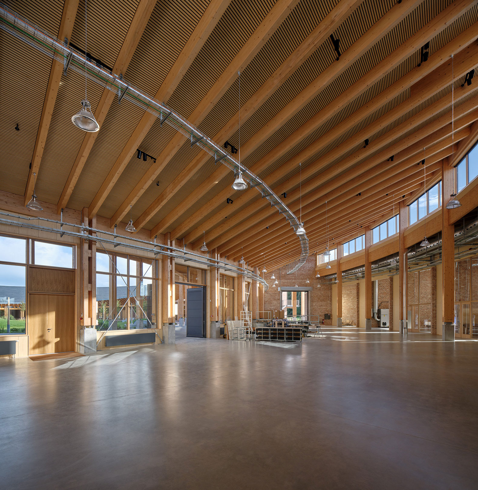 La materialidad expuesta hace que los métodos de construcción sean legibles para los ocupantes. Con el tiempo, el desgaste y la pátina en las diferentes superficies (madera, ladrillo, pizarra, piedra) enriquecen el carácter, y el envejecimiento en sí mismo se convierte en una herramienta educativa, brindando a los jóvenes aprendices una comprensión tangible de cómo los materiales responden al clima, el uso y el paso del tiempo. Las juntas visibles, tectónicamente clarificadas, forman parte de la ornamentación arquitectónica, revelando la lógica de la construcción y fomentando una comprensión de la artesanía que va más allá de la estética.
