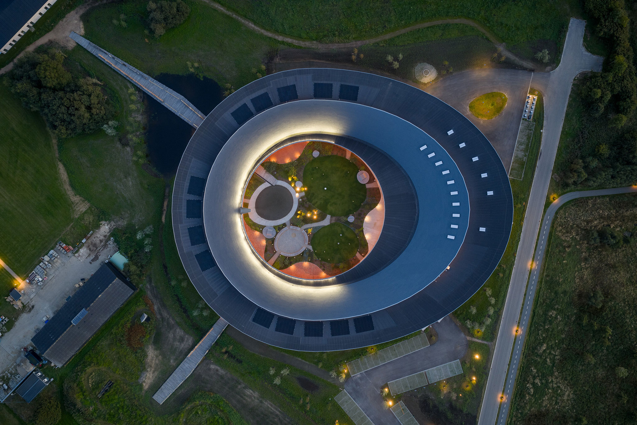 Dorte Manrup proyectó el edificio prestando gran atención a las condiciones meteorológicas y solares. El programa plantea una nítida organización de espacios, situando la mayoría de dormitorios alrededor de cocinas y comedores (algunos tienen cocina propia), generando una disposición a lo largo del perímetro de este gran edificio con forma elíptica. El conjunto muestra una imagen unitaria gracias a su cubierta de pizarra negra, articulada con diferentes pendientes que facilitan la entrada de luz en las instalaciones, a la vez que mejoran su comportamiento de protección frente a los fuertes vientos de la zona.