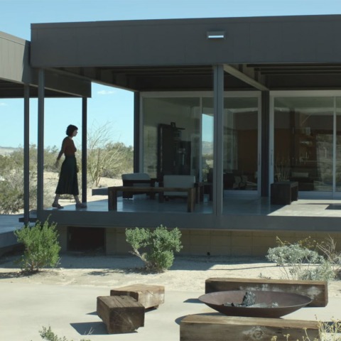 Otro aspecto que da vida al vídeo, filmado con los planos fijos característicos de la cinematografía de arquitectura más tradicional, es el viento, o más bien, la brisa. Una suave brisa que va cargando de movimiento a cada plano, tanto en el exterior como dentro de la vivienda, donde hace pendular levemente a la luminaria que cuelga del cielorraso, y nos recuerda que estamos frente a una fotografía en movimiento.