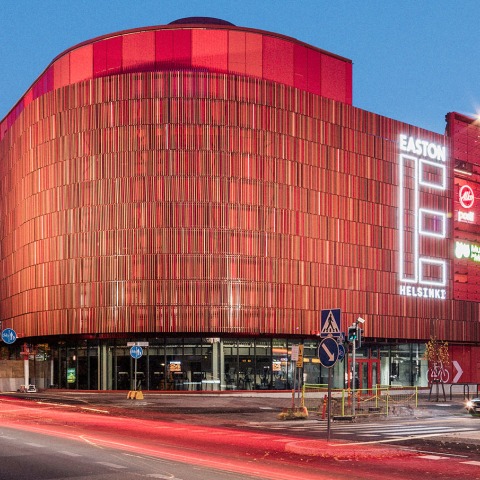 Easton Helsinki, un centro comercial diseñado por Lahdelma & Mahlamäki en Itäkeskus, Helsinki, es un desarrollo de 66,000m² en su primera fase en un plan urbano más grande y busca celebrar la identidad y la cultura de los distritos orientales de Helsinki. El proyecto idealista y físico se centra en la comida, reuniendo a vendedores locales y negocios en el corazón del centro comercial; al mismo tiempo introduciendo en un programa comercial mucho más variado en torno a esto. Mientras se convierten en un faro para los que están en la autopista, el centro comercial toma un enfoque mucho más tranquilo cuando se ve desde la calle, con su fachada ligeramente ondulada de azulejos de cerámica que adopta la estética local de ladrillo rojo y se sienta cómodamente dentro de la escala urbana.