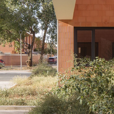 El equipo formado por Parra Arquitectos y José Miguel Useros de INCOSA busca que la tipología del edificio reproduzca la estética ya presente en El Ensanche: bloques de tres o cuatro plantas con fachada cerámica, que otorgan a esta zona de la ciudad su característico color rojizo homogéneo. El uso del ladrillo se plantea de forma consciente, con la intención de retomar el sistema constructivo de la zona, pero mejorado. Además, el color rojizo cerámico se contrasta con las fachadas blancas.