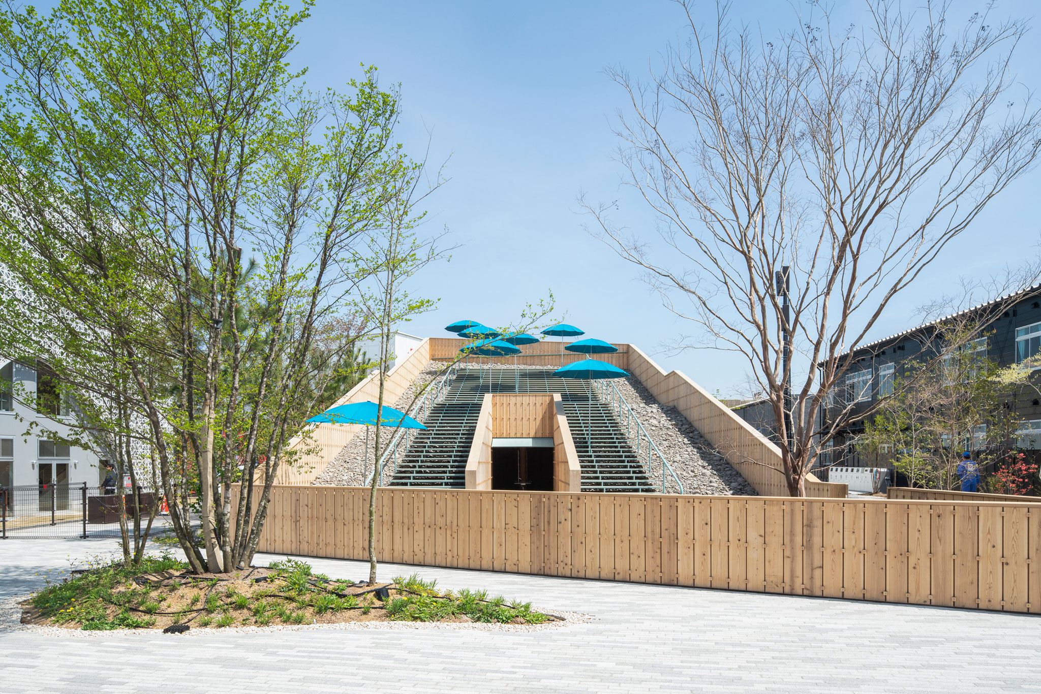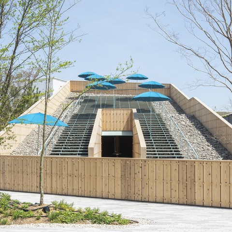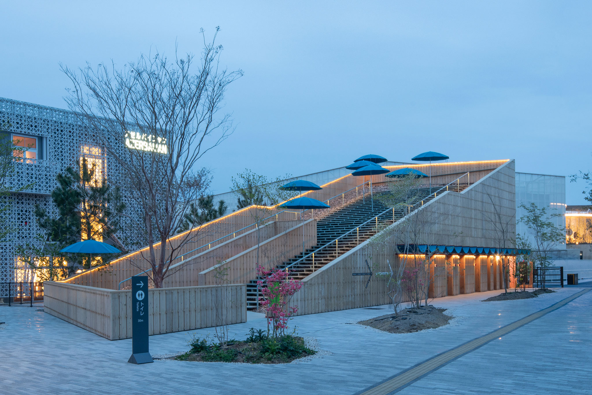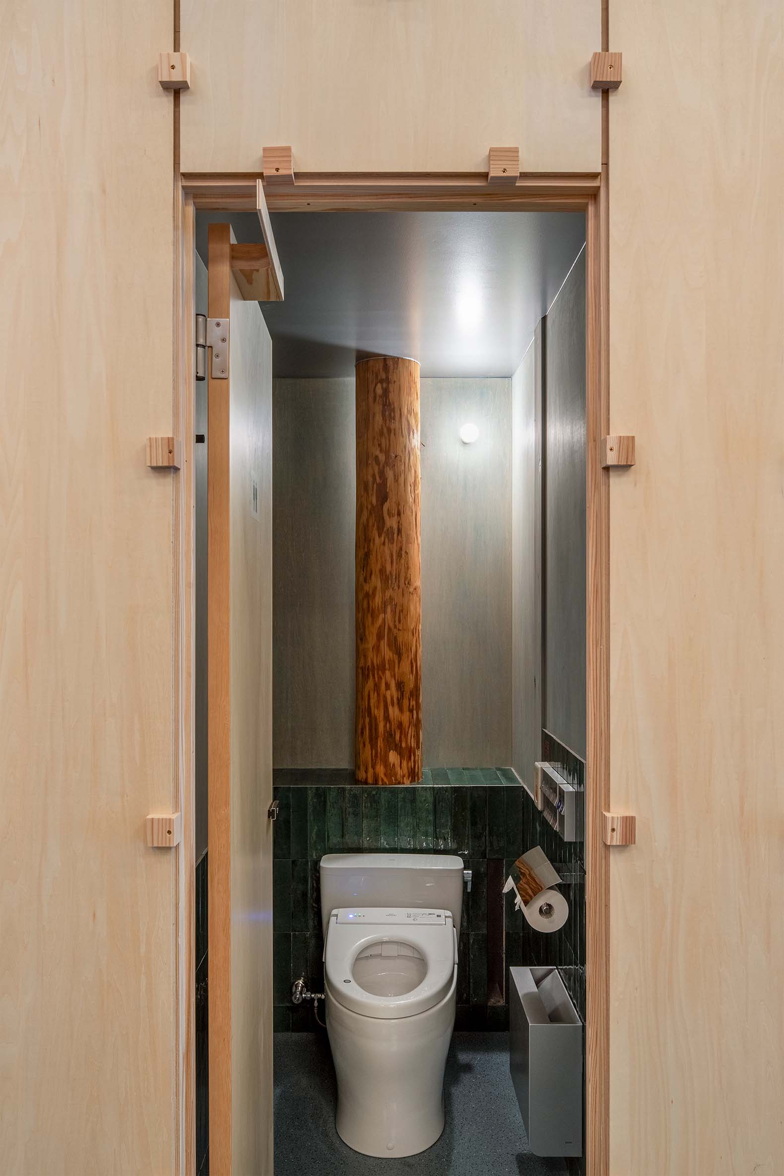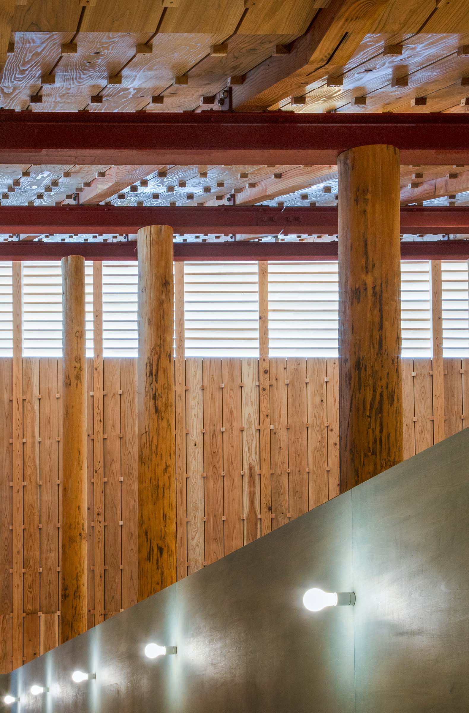 Somos, metafóricamente, todos peces nadando en la misma agua, por eso la mayoría de estos baños son para todos los géneros, sin distinción de edad ni de identidad. El espacio interior es completamente abierto, sin puntos ciegos. Así, de principio a fin del recorrido, todo el espacio puede ser abarcado en una sola mirada. La sección transversal triangular del edificio favorece la ventilación natural (ventilación por tiro), permitiendo que el aire caliente ascienda y que el aire fresco entre gracias a la brisa marina del suroeste. De esta manera el espacio interior se mantiene constantemente lleno de aire fresco, dejando solo el agradable aroma de la madera de cedro. El flujo de agua sobre el tejado refleja el movimiento de las personas dentro del pabellón.