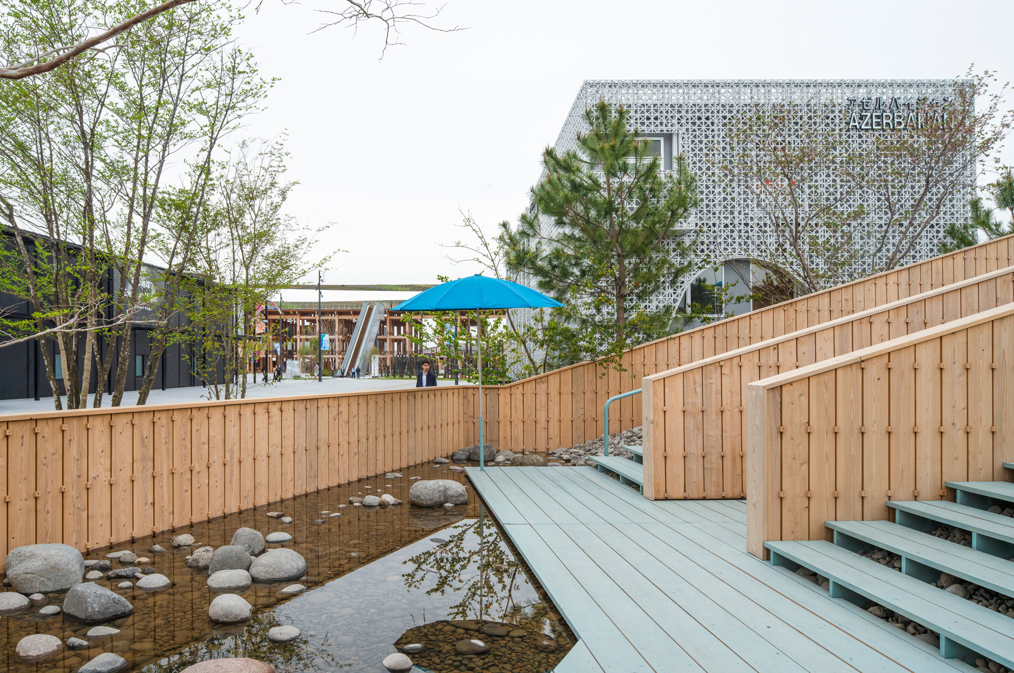 El pabellón One Water no solo cumple su función, sino que invita a detenerse, observar y sentir, transformando una experiencia cotidiana en un momento poético de conexión con el entorno.