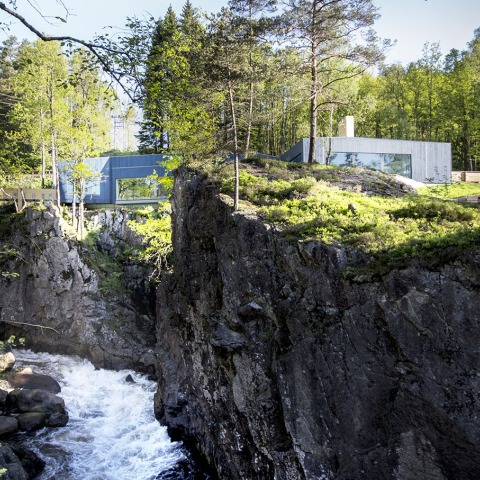 Diseñado por Rever & Drage Architects, el proyecto es en sí una contradicción, es pequeño al mismo tiempo que grande, a la vez es moderno y tradicional, tiene espacios cómodos y zonas más agrestes. Ubicado en un denso bosque de roble, el edificio se caracteriza por estar diseñado para vivir una experiencia única donde el salmón va a ser el protagonista, dando al visitante la posibilidad de ver al salmón pasar por la piscina artificial subterránea o caminar por el sendero a lo largo del río Lynga para ver la cascada de Kvåsfossen en Lyngdal, donde se encuentra el camino del salmón.
