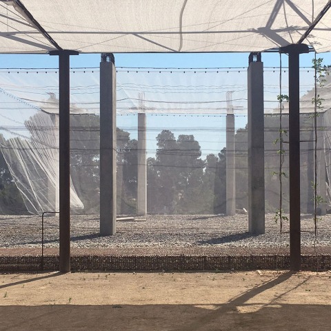 El aire aparece como brisa cálida de poniente en el altiplano, y como fresca ventilación cruzada en el bosque preexistente y en la nueva pérgola vegetal del espacio de acogida.
