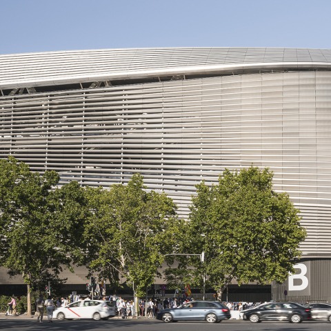 El Estadio Santiago Bernabéu está llegando a la fase final de su remodelación, con la que pretende contribuir a ordenar el entorno aportando valores urbanos y reflejar los valores del deporte mediante un sistema de envolvente flexible que refleja la luz de manera cambiante, siendo un reflejo de la actividad de la ciudad.