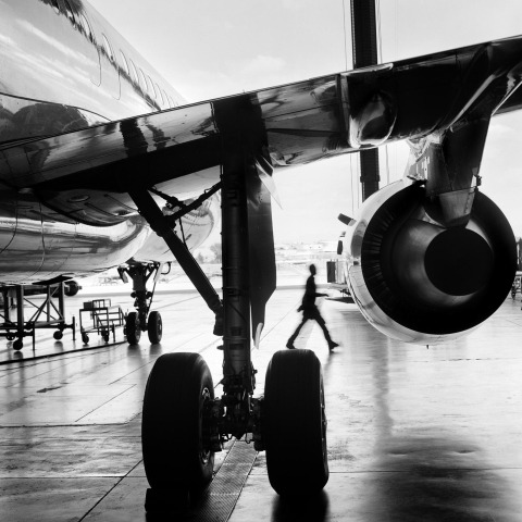 Hasta el próximo 10 de julio, algunas de las calles más céntricas de la capital acogerán una muestra con imágenes del fotógrafo Paco Gómez que ha visitado los hangares de mantenimiento de la compañia aérea.