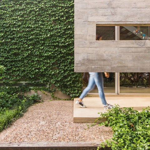 Como solución constructiva se adopta el hormigón armado con tablas a la vista en todos los elementos estructurales y de cerramiento, cielorrasos, tabiques y columnas. Los pisos, tanto interiores como exteriores son de micro cemento, lo cual genera continuidad entre los distintos espacios.