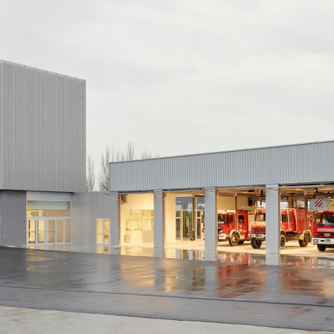 Volumétricamente, el edificio puede explicarse como un zócalo, que recoge todas las circulaciones y servicios, sobre el que se apoyan dos volúmenes: el volumen de la torre y el volumen de la nave, que gestiona los vehículos de emergencia.