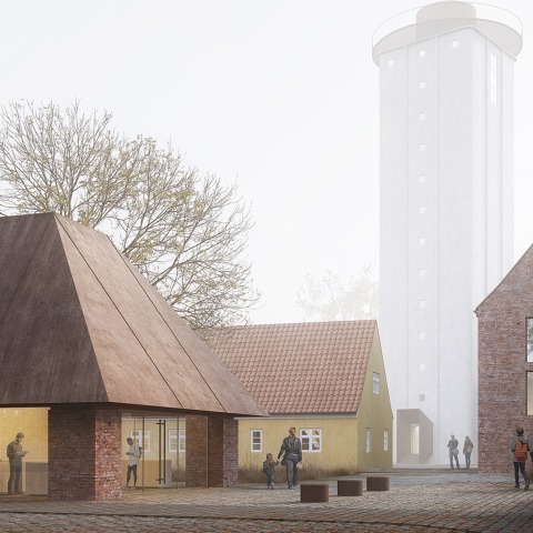 La cafetería y restaurante se ubicarán en el antiguo Købmandsgården. El edificio de administración, edificio de obra nueva, se situará en el frontón, cerca del museo y de la nueva entrada.