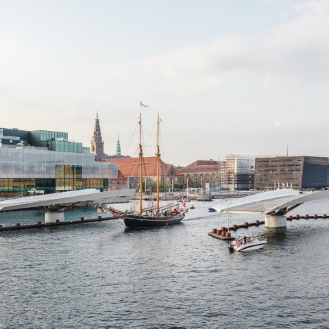 El puente cruza el puerto de la ciudad al lado del nuevo edificio BLOX que, entre otras cosas, alberga el Centro de Arquitectura Danés, cafeterías, un parque infantil y nuevos espacios públicos, todo lo cual da vida a un parte de Copenhagen Habour que ha estado desierta durante décadas. Conecta a la perfección la vista de Vester Voldgade desde el Ayuntamiento hasta el puerto y luego a Christianshavn en los muelles de Langebrogade.