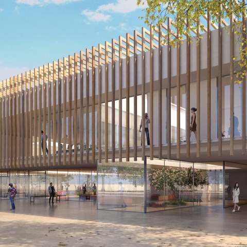 La agrupación en un solo volumen y su organización interior facilita notablemente la accesibilidad al centro y su eficiencia energética. Hacia el exterior el conjunto es identificado por una gran celosia que permite tamizar la luz exterior en diferentes momento del día, y épocas del año.
