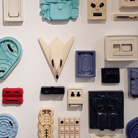 «Son huellas que nos indican diferentes facetas de nuestra civilización. Pero la gran mayoría de estos no revelan para qué fueron hechos o qué protegieron alguna vez. Nuestras asociaciones quedan inciertas. Estos residuos de material frágil y barata han sido transformados por Patricia Camet a través de moldes en yeso en objetos de cerámica. Un proceso de apropiación artística que se aleja de la producción industrial, dando como resultado piezas manufacturadas una a una que se diferencian ligeramente unas de otras, y que son intervenidas posteriormente por la artista devolviéndonos un conjunto de expresiones faciales antropomorfas a modo de emoticonos», explica Bárbara Panse, doctora en Ciencias de Teatro y Crítica de Arte y comisaria de la muestra.