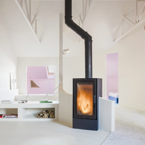 En el ático de esta casa se acumulaban juguetes, muebles y polvo. Era un espacio completamente diáfano, de aproximadamente 70 metros cuadrados, que apenas se utilizaba. Por ello, los clientes nos encargaron convertir esta buhardilla en una casa para sus hijos e invitados. Una pequeña casa que tuviera una sala de estar, un dormitorio, una chimenea, mucho almacenamiento y un baño.