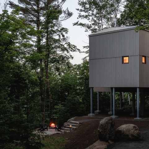 La Cime es un proyecto de microchalet en plena naturaleza con la idea de partida: la aventura sensorial. Está situado en el pueblo de Sainte-Béatrix, en Lanaudière, en un terreno densamente arbolado que ofrece una vista elevada de las copas de los árboles. La pequeña vivienda bordea una importante caída de terreno de aproximadamente 100 pies. Dependiendo de la estación y de la densidad del follaje, podemos ver el río Boule más abajo.