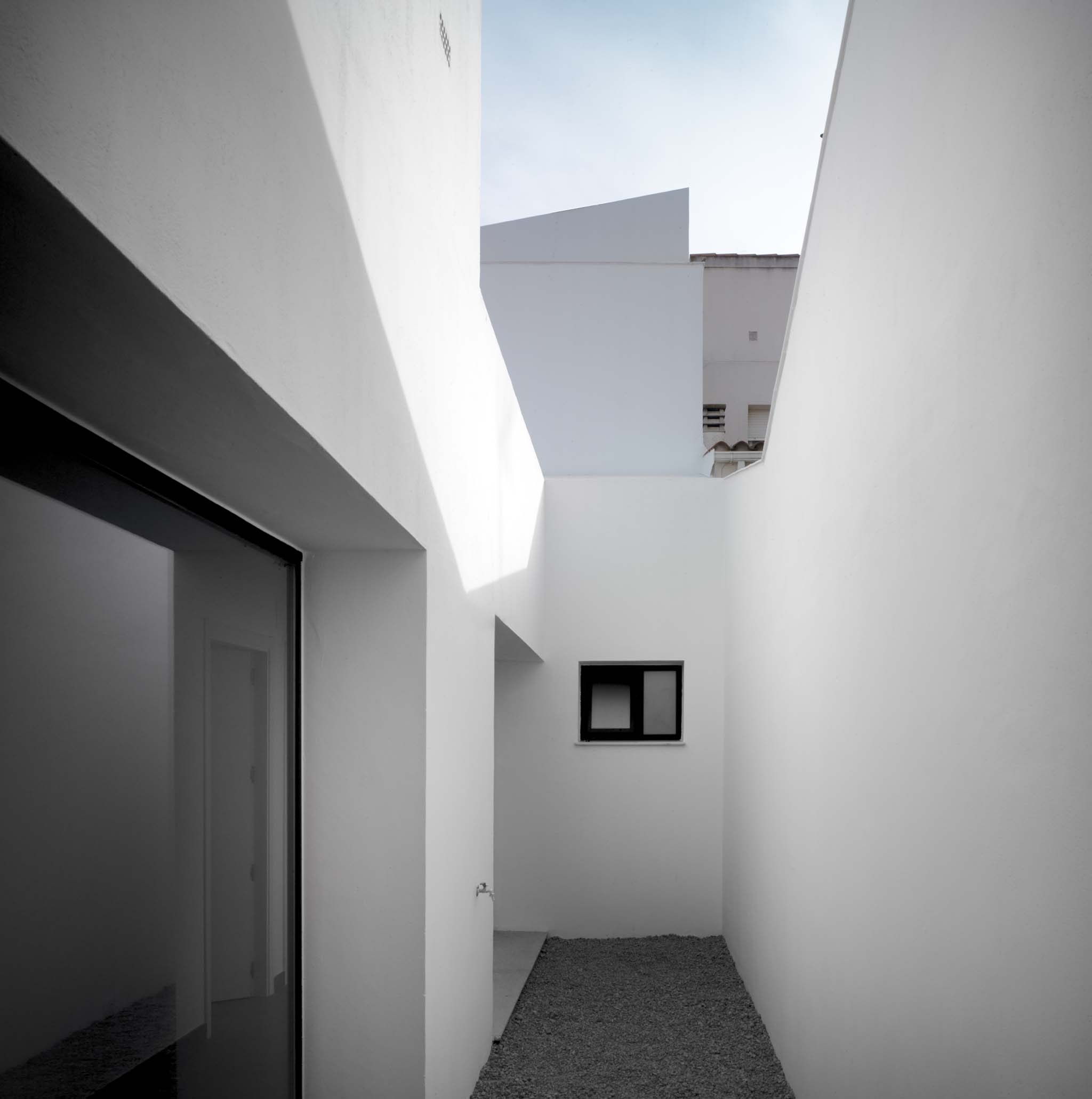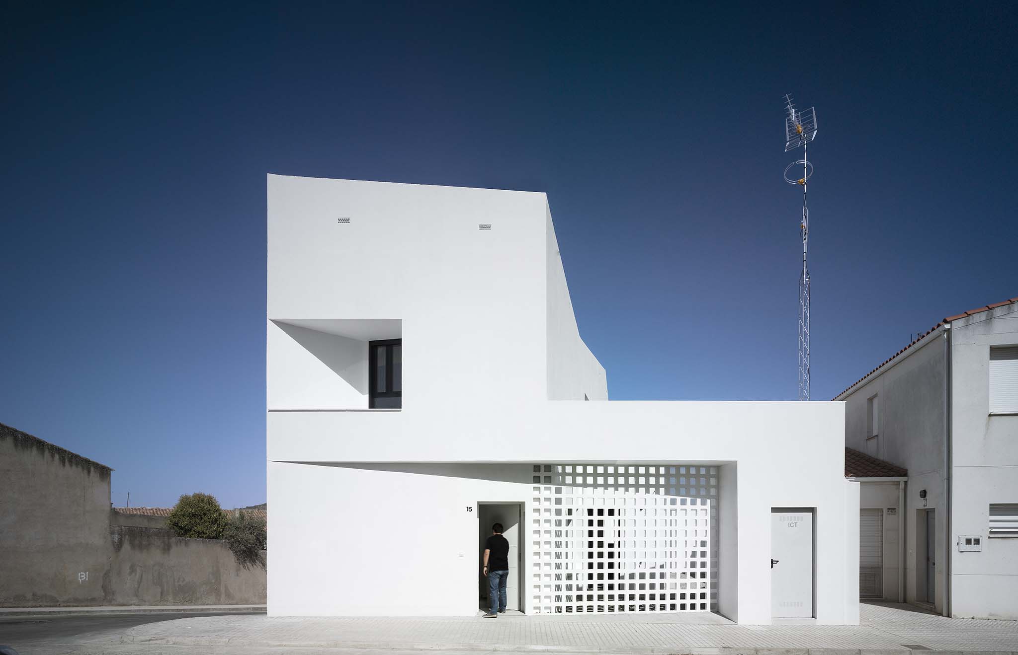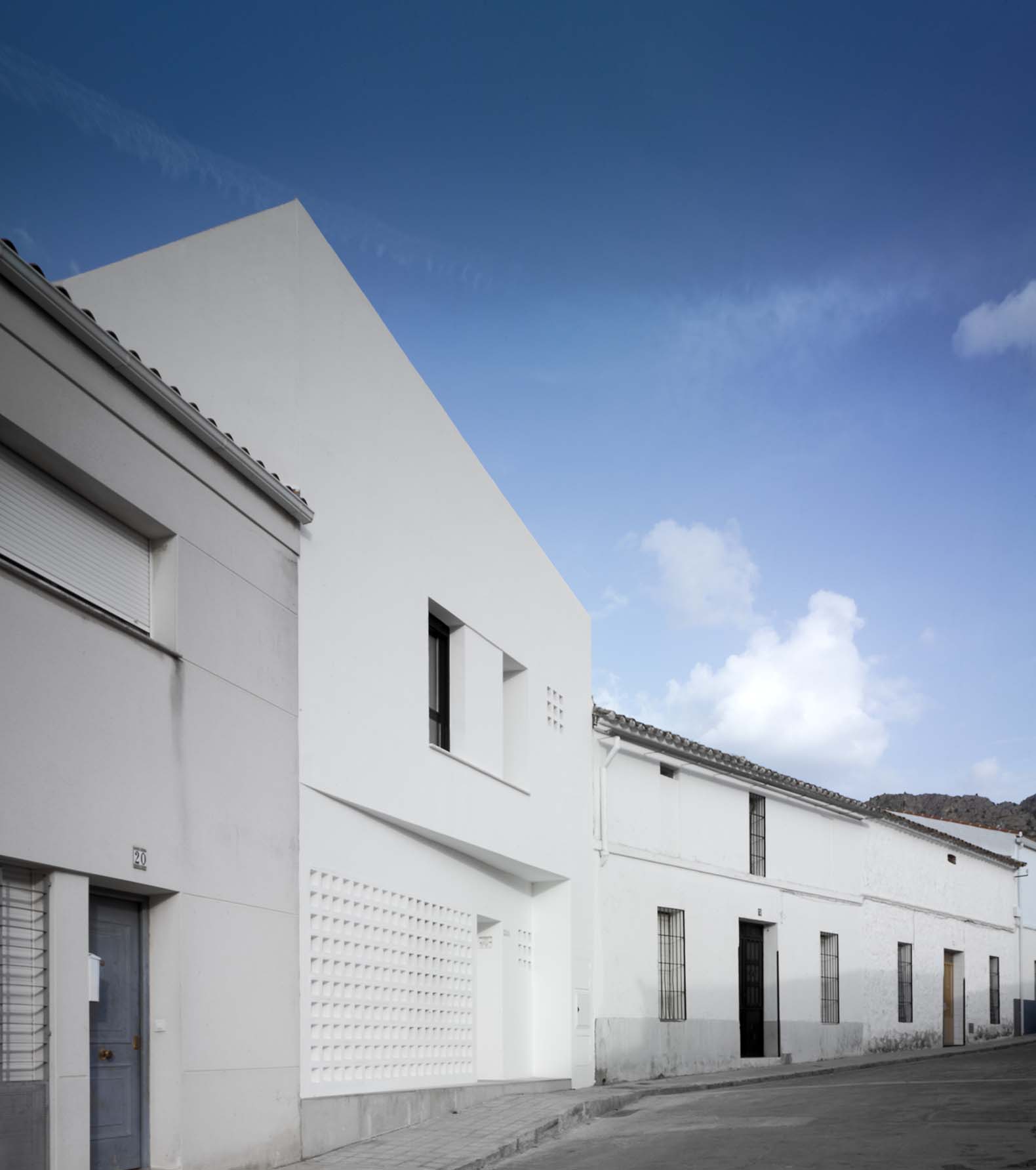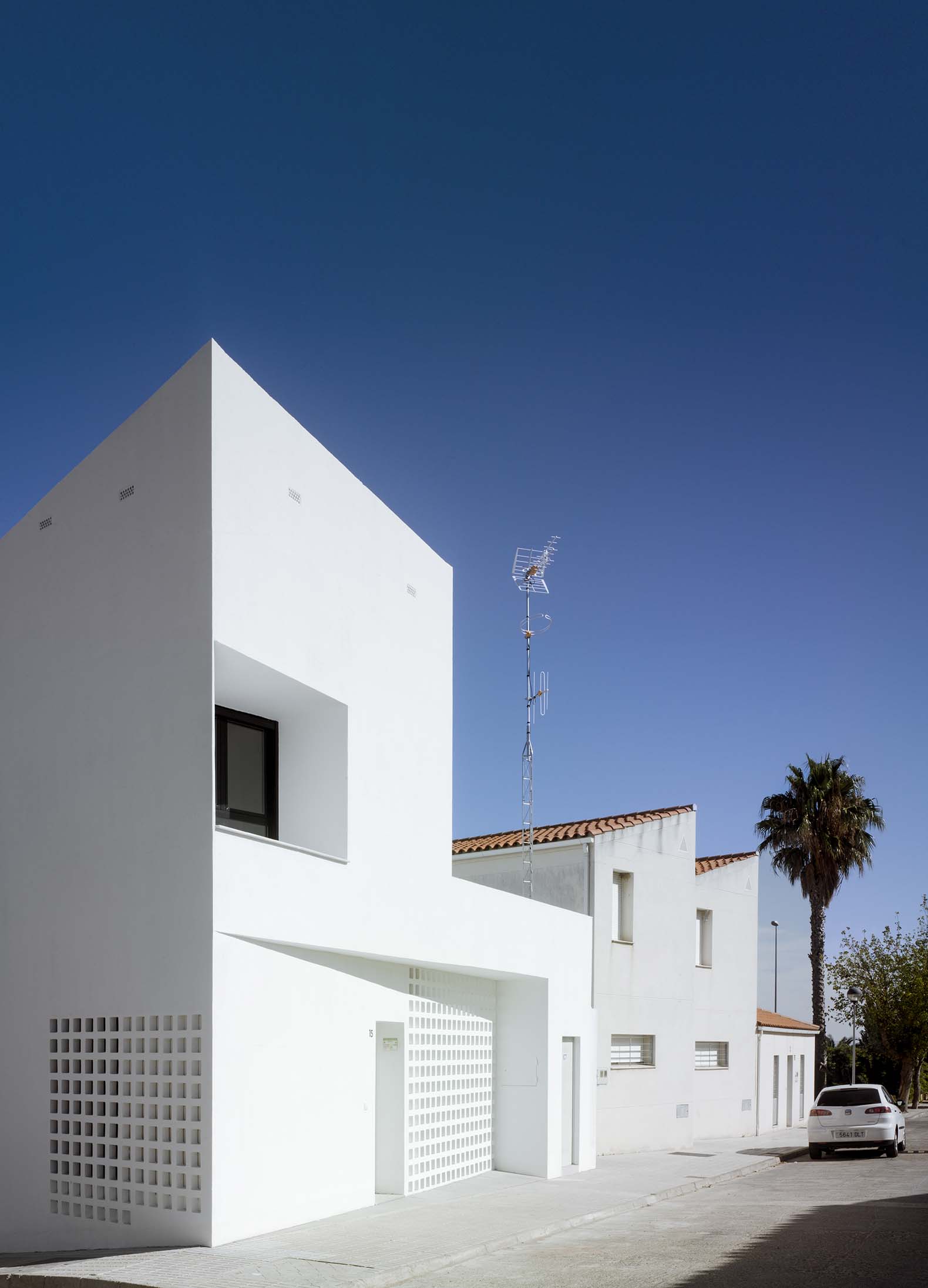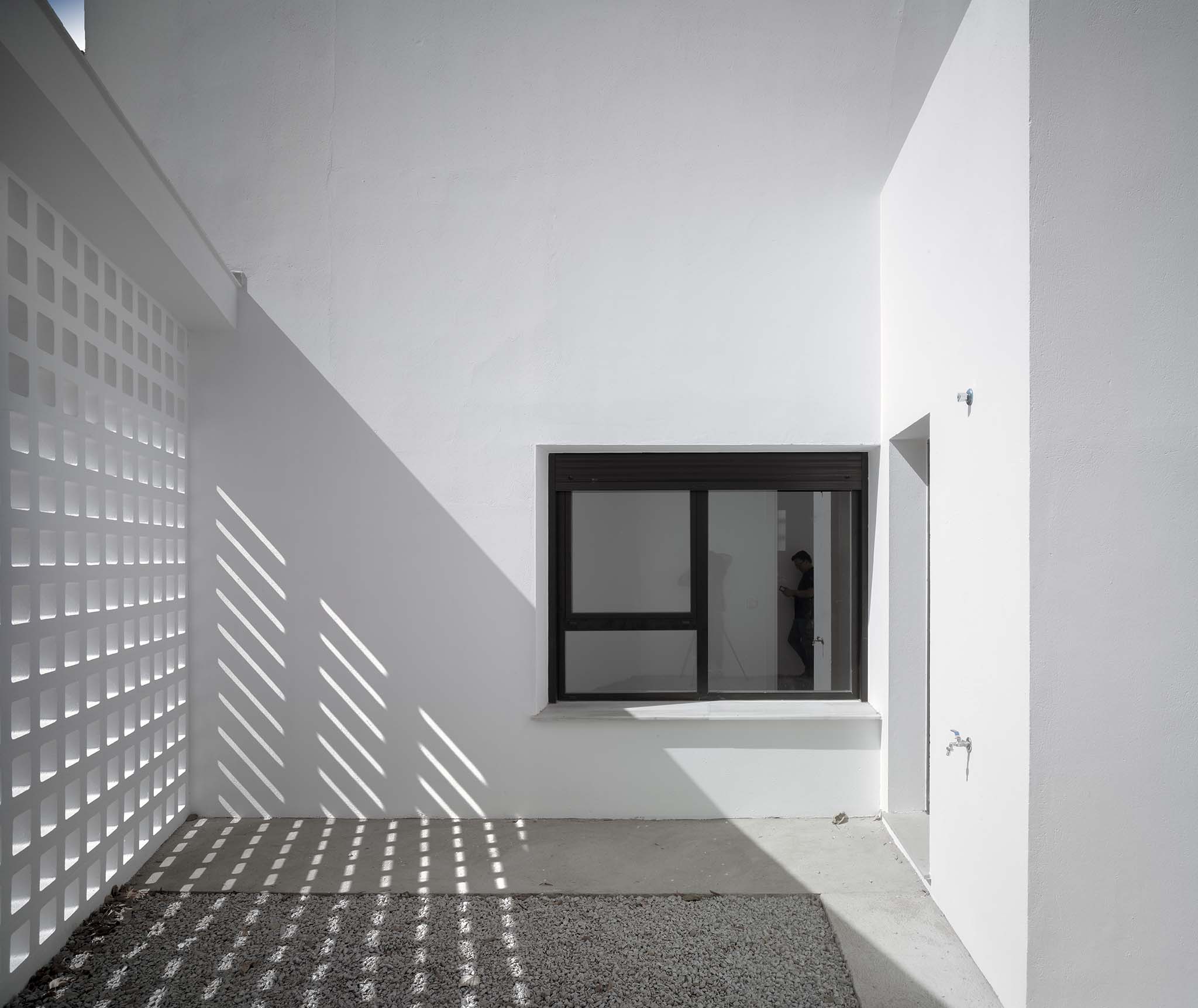 Las viviendas toman un valor paisajístico destacando entre sus adyacentes por su textura y color blanco pulido que invita a mirar hacia el interior a través de sus paños en celosía que unen el exterior hacia sus patios a través de la luz y la ventilación, pero sin dejar al margen la privacidad de sus estancias.