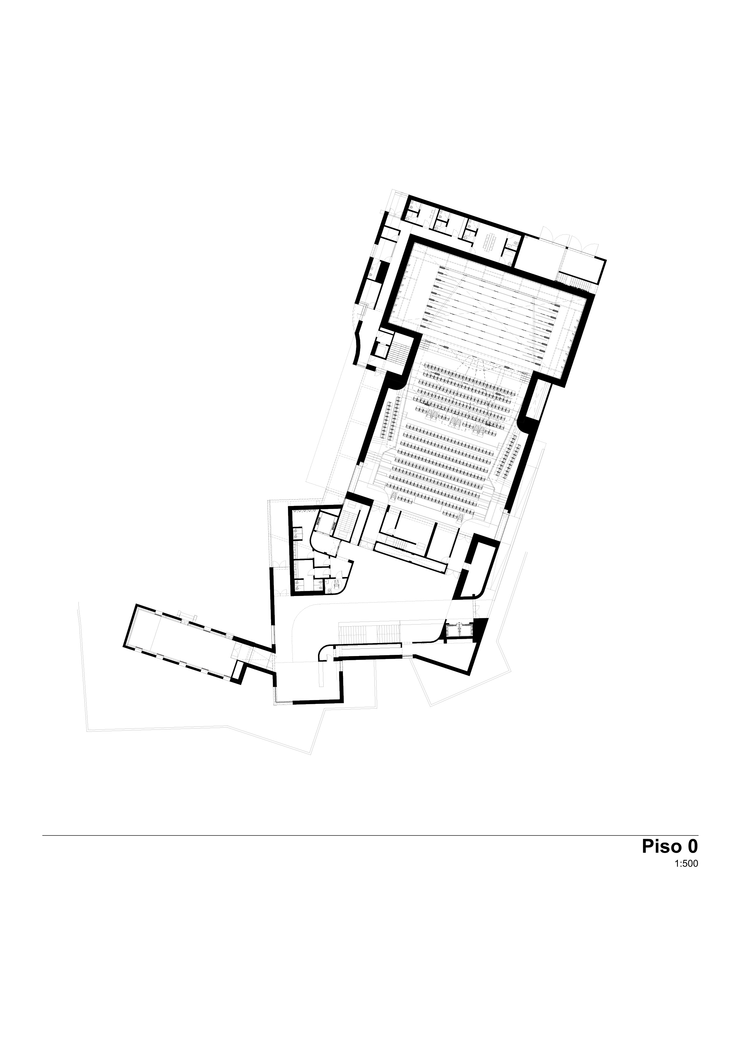 «Ponto C - Cultura e criatividade» proyectado por Galeria Gabinete se desarrolla en cuatro niveles en una gran volumetría. El nivel -2 se destina al uso técnico, la carga y descarga. En la planta -1 se ubica el espacio expositivo, la cafetería y el primer nivel del auditorio conectado con el jardín, el auditorio exterior y el sendero en dirección al Cavalum. La planta 0 cuenta con la entrada principal, el vestíbulo con la taquilla y el acceso al auditorio y la Casa da Catura. La planta 1, es de uso técnico con acceso directo a la pasarela del escenario principal.