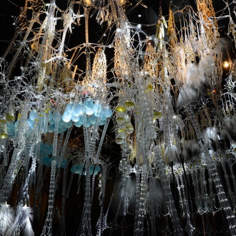 Cámara Epiphyte se concibe como un archipiélago de masas interconectados que simulan las sensaciones humanas, a través de movimientos coordinados y sutiles. A través de cada isla flotante, estructuras densamente entretejidas y delicados mantos compuestos por miles de ligeros componentes fabricados digitalmente se unen en una respiración y un murmuro casi sincronizados. El público entra en espacios escultóricos altamente sensuales e íntimos que acogen pequeños grupos de actividad interconectados con grandes áreas de reunión. Este nuevo trabajo experimental explora las intersecciones entre el arte multimedia, la mecatrónica distribuida interactiva y la biología sintética.