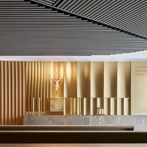 Los arquitectos utilizan una geometría curvilínea, sin parámetros jerárquicos previos para acercar el proyecto a espacios tradicionales religiosos que a lo largo de la historia se han realizado como espacios cóncavos que facilitan el recogimiento y la oración.
