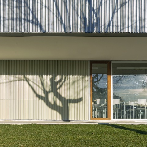 La verticalidad de las lamas del revestimiento entran en un fuerte contraste con la horizontalidad de los diferentes volúmenes prismáticos mostrando una importante riqueza visual en el lenguaje arquitectónico.