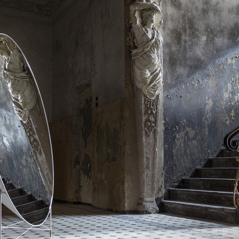 El diseño del espejo MUDU se esfuerza por romper una idea equivocada estándar de que el espejo es un objeto plano en la pared. En cambio, emplea un enfoque escultórico, creando así una pieza volumétrica de mobiliario.