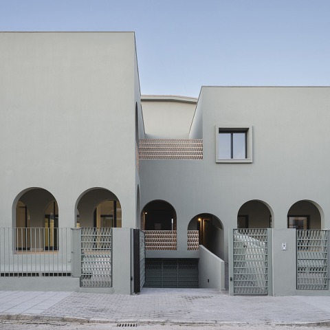 Cuatro viviendas a escasos metros de la desembocadura con el mismo programa pero con ubicaciones diferentes, dos de tierra y dos de horizonte. El vacío del patio como gran protagonista, ya sea para habitarlo en las dos viviendas de planta baja o para formalizar recorridos en las dos altas. Dibujado no como objeto sino como posibilitador de múltiples recorridos y así múltiples formas de conocer y habitar la casa. Porches y pérgolas con su propia identidad y como filtro para llegar a ellos. Galerías con arcos para desdibujar o para posicionarse de una manera discreta en la calle y con la ilusión por trabajar con un elemento tan noble y tan presente en nuestro imaginario.