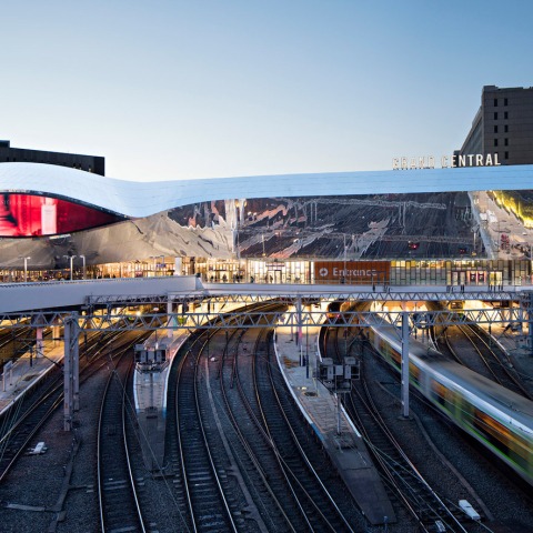El diseño pretende crear una nueva imagen del entorno de la estación, reflejando ciertas áreas del paisaje urbano y el cielo. El objetivo es re-establecer la relación entre la forma y la función de la estación mediante la reorganización interna del edificio y la nueva fachada. La estructura existente del edificio fue originalmente concebida para un objetivo completamente diferente al ahora buscado, tanto desde el punto de vista estructural como visual. El edificio se cubre con un velo reflectante que esconde la fachada y envuelve al edificio rodeándolo. El concepto para esta envolvente es sencillo: vestir a la estación con el cambiante cielo de Birmingham y el movimiento generado por los flujos de pasajeros y trenes. De esta forma la nueva fachada de la estación se convierte en un instrumento de expresión de la vida urbana del centro de Birmingham.