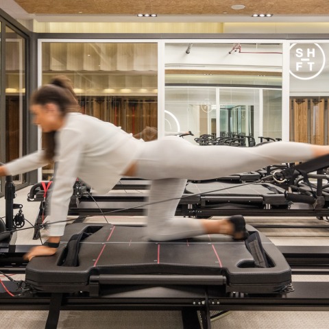 Shift es el primer estudio lagree en Kuwait ubicado en un centro comercial. Este proyecto se inspira en los estilos arquitectónicos industriales donde la estética en bruto se ha implementado en varios aspectos del diseño. Las columnas expuestas y las porciones del techo definen este elegante almacén.
