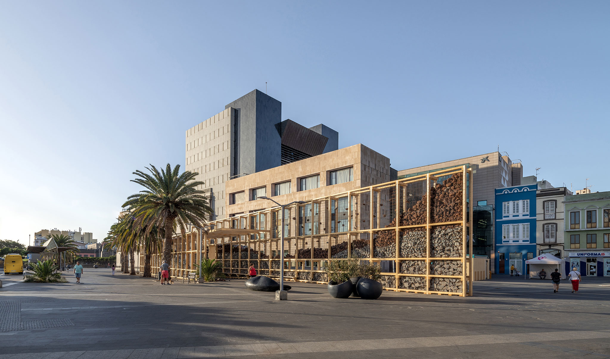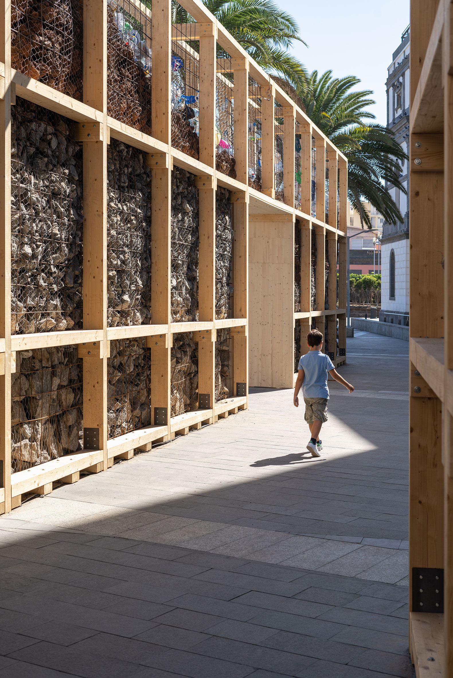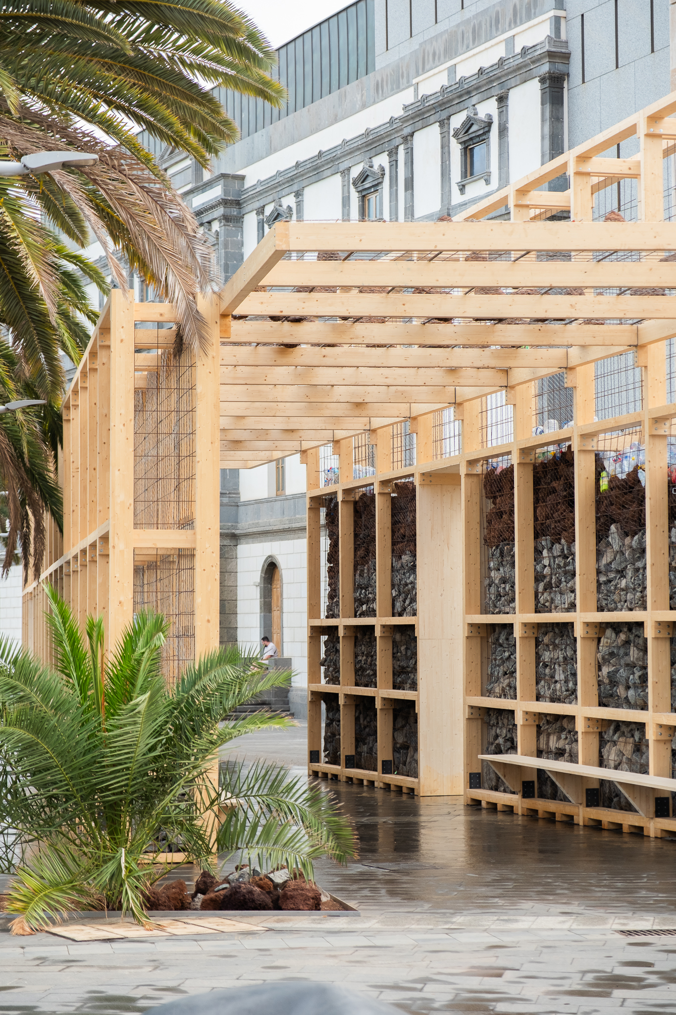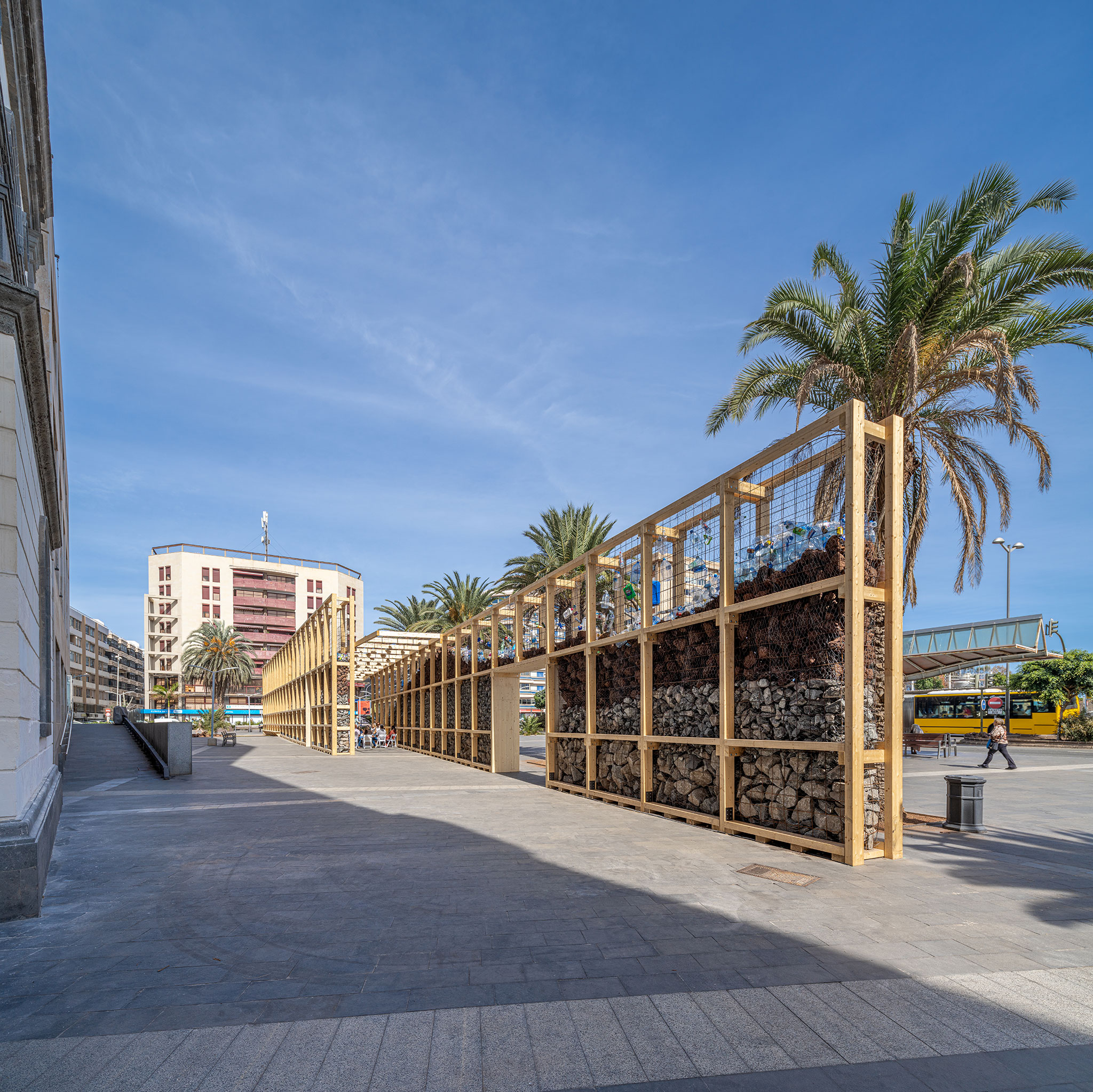 El pabellón «De Roca Madre», realizado por Alejandro Carrasco Hidalgo, Eduardo Cilleruelo Terán, Alberto Martínez García y Andrea Molina Cuadro (Estudio Latente), constituye el segundo pabellón en la segunda sede de esta edición de TAC!, que arrancó con la presentación de «ESPARTAL» en Alicante. El objetivo de esta instalación temporal es transformar la Plaza de Stagno en un espacio vivo, pedagógico y simbólico, en el que se toman como referencia las piedras volcánicas que caracterizan el territorio, confrontadas con los residuos plásticos encontrados en las playas de la isla.