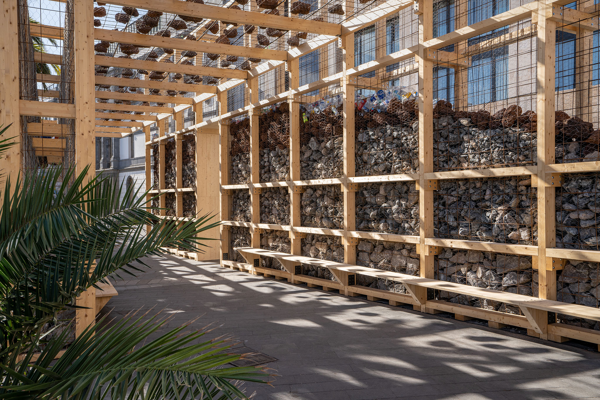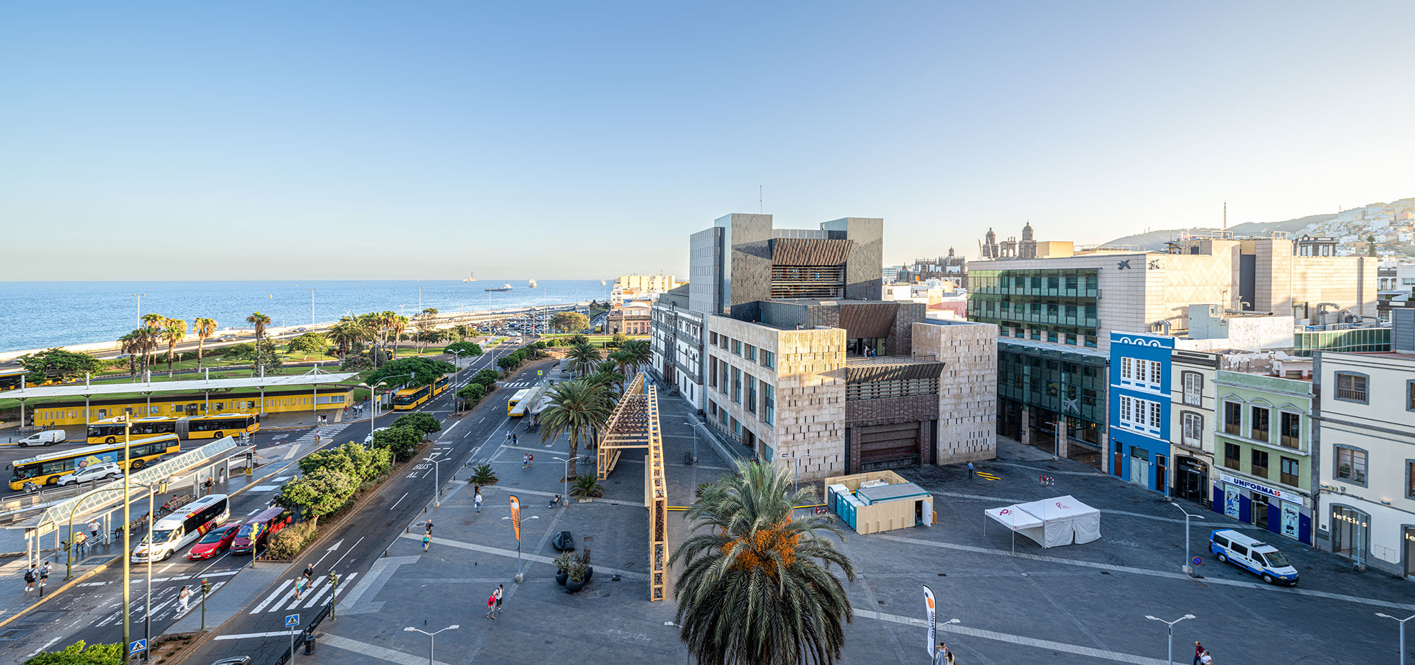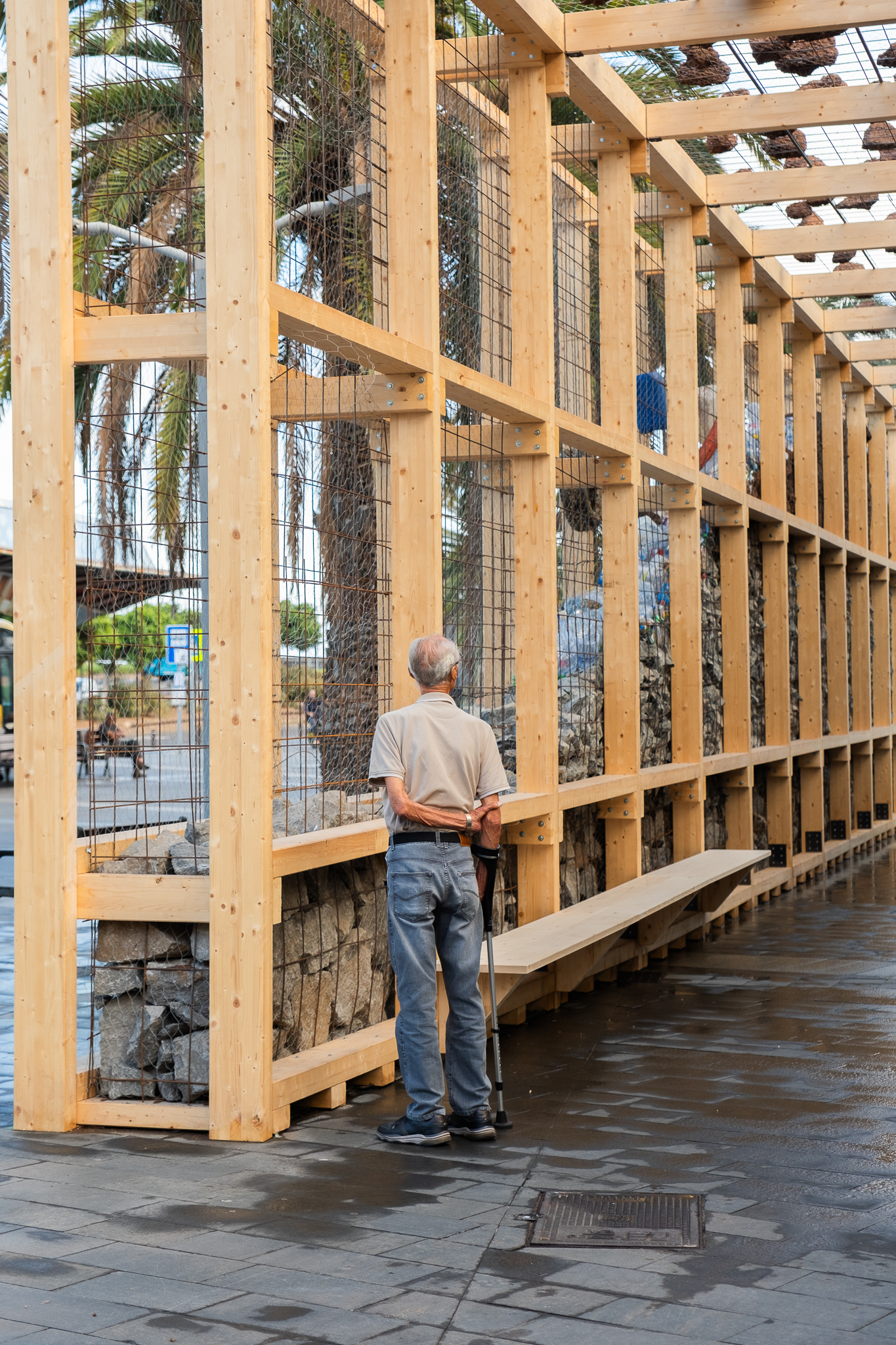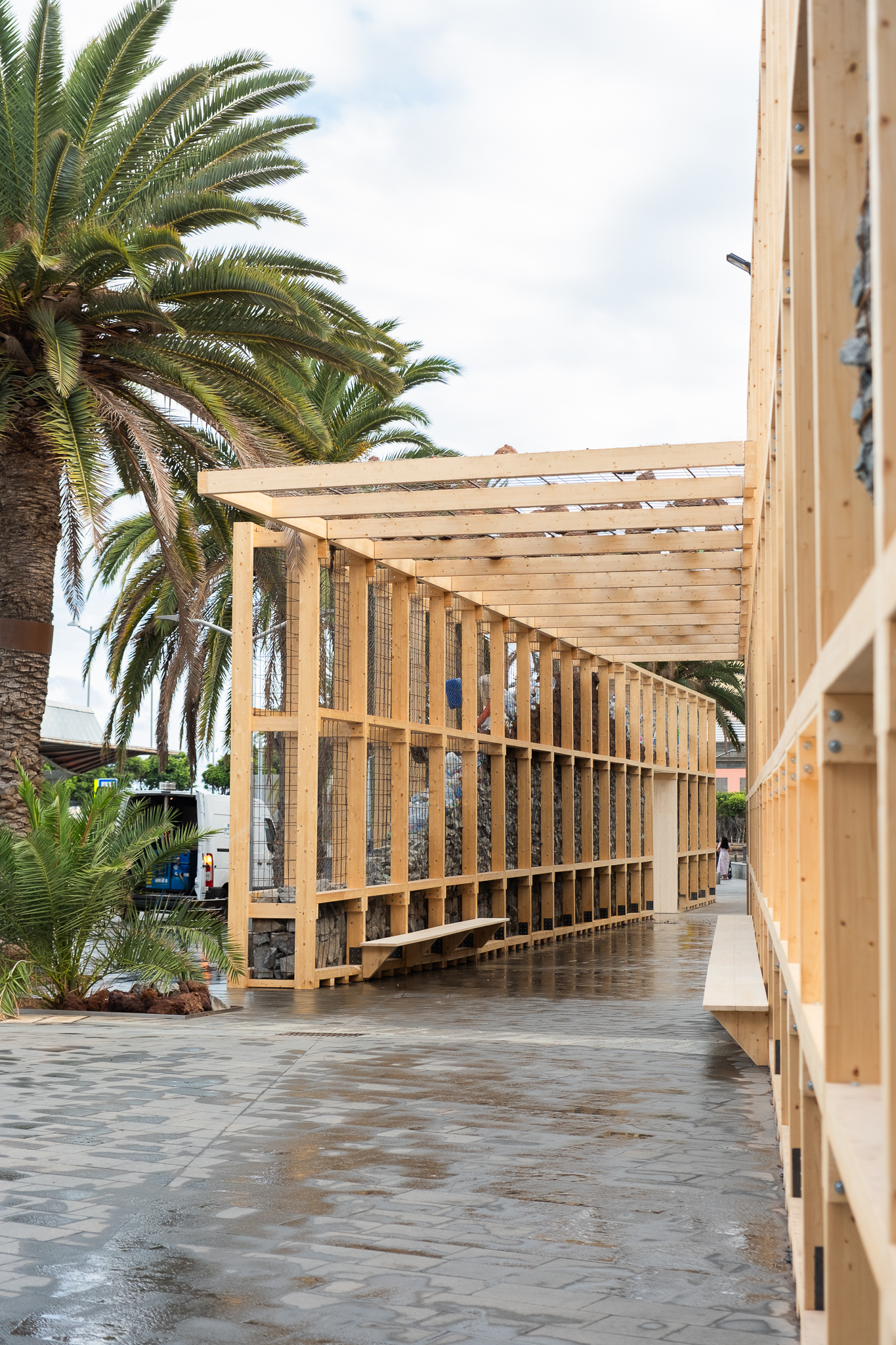 El pabellón «De Roca Madre», realizado por Alejandro Carrasco Hidalgo, Eduardo Cilleruelo Terán, Alberto Martínez García y Andrea Molina Cuadro (Estudio Latente), constituye el segundo pabellón en la segunda sede de esta edición de TAC!, que arrancó con la presentación de «ESPARTAL» en Alicante. El objetivo de esta instalación temporal es transformar la Plaza de Stagno en un espacio vivo, pedagógico y simbólico, en el que se toman como referencia las piedras volcánicas que caracterizan el territorio, confrontadas con los residuos plásticos encontrados en las playas de la isla.