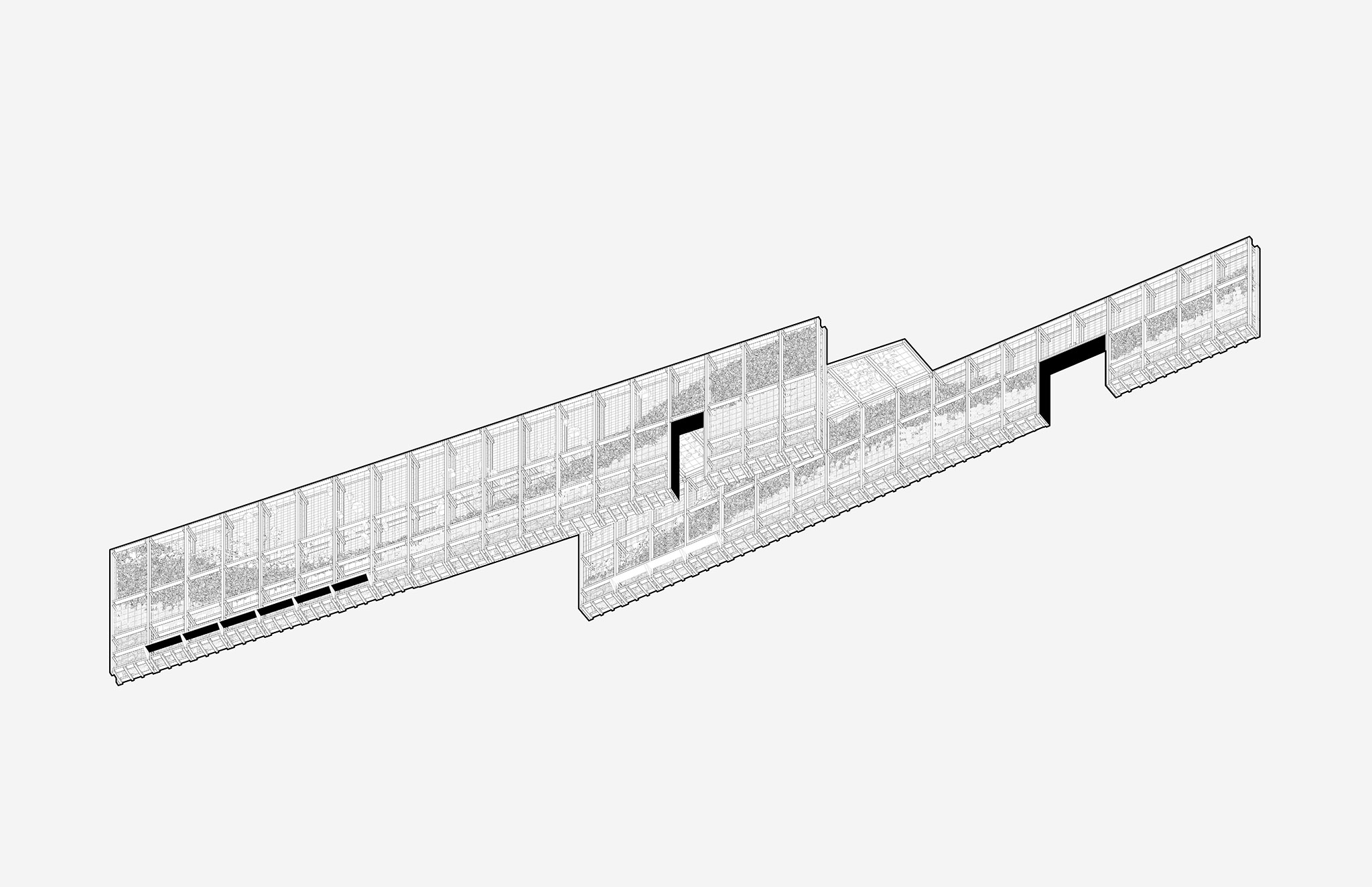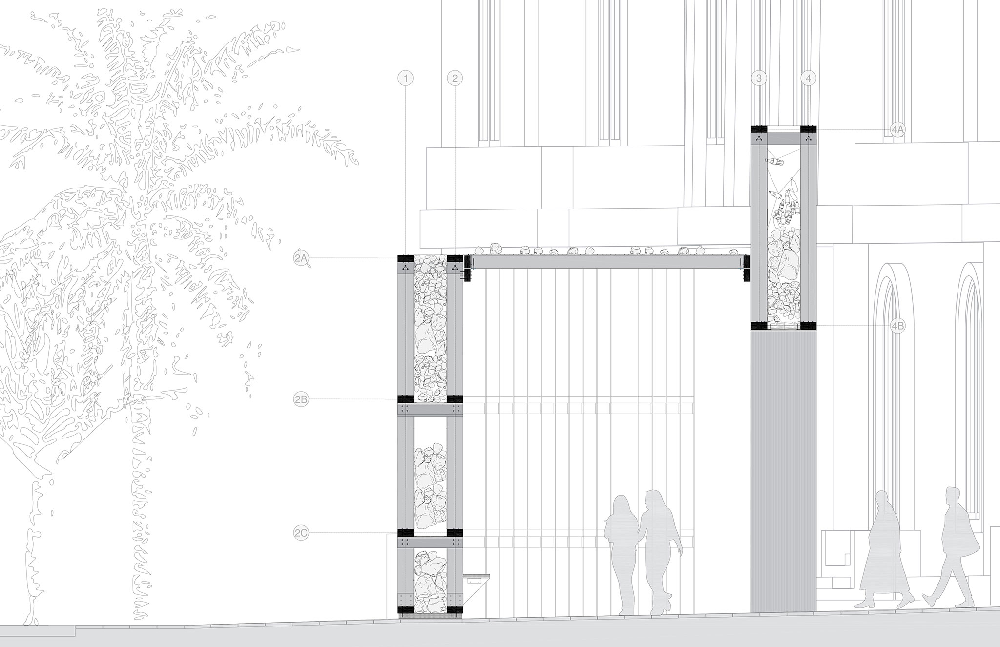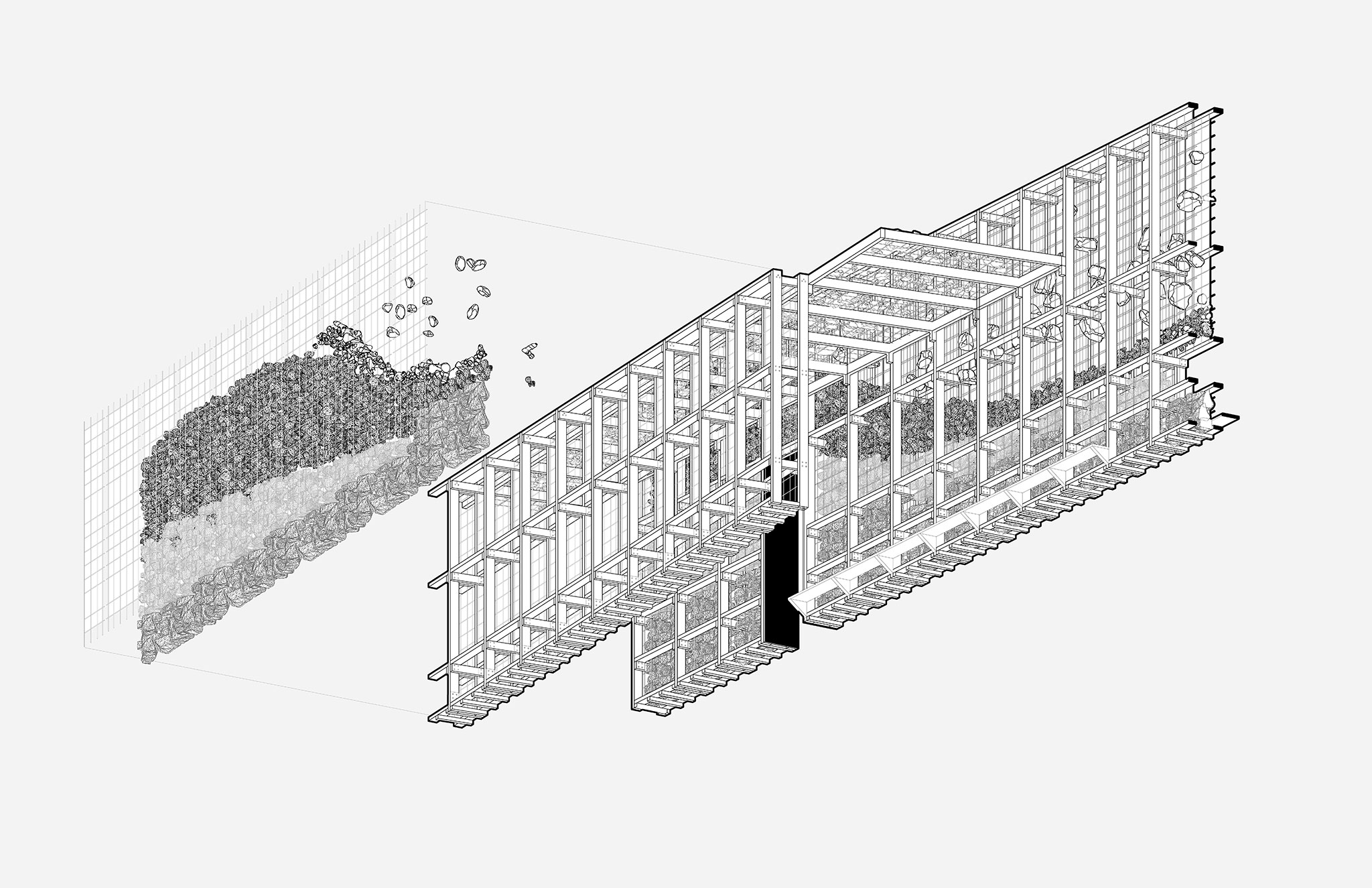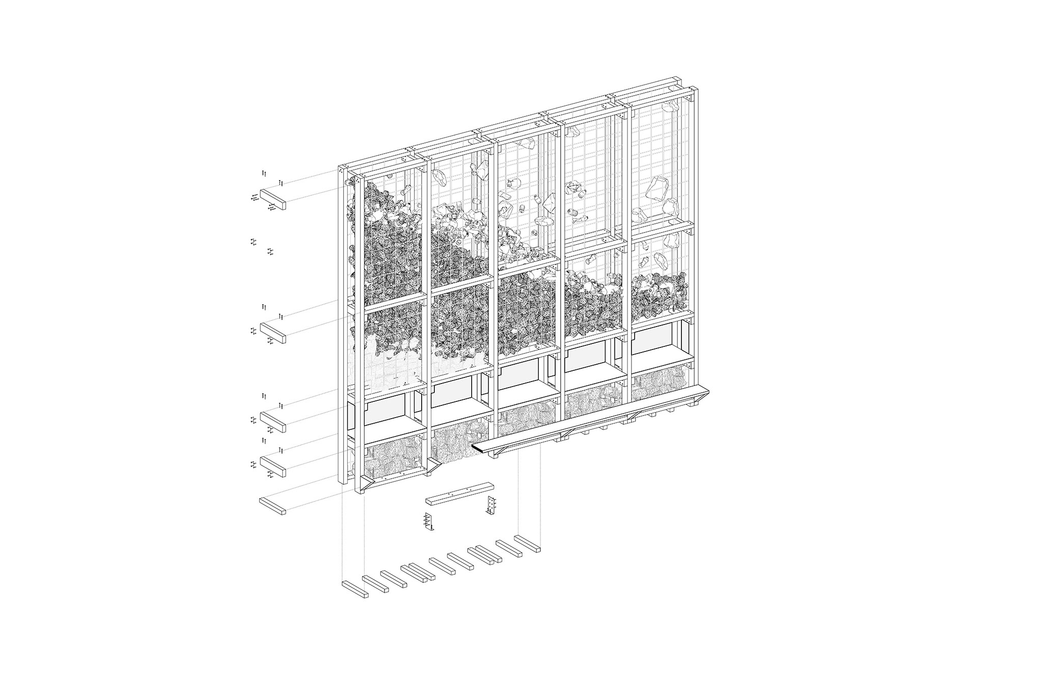 La instalación consiste en dos grandes contenedores alargados a modo de grandes muros, realizados con una estructura de madera y envueltos por gaviones. Es un volumen hueco, en cuyo interior se depositan diferentes tipos de piedra autóctona, cuyo depósito simula distintos estratos, situando en la parte superior la nueva capa geológica que caracteriza nuestro tiempo, el Antropoceno, formada con los residuos plásticos recogidos durante las limpiezas de playa organizadas junto al colectivo Precious Plastic Gran Canaria.