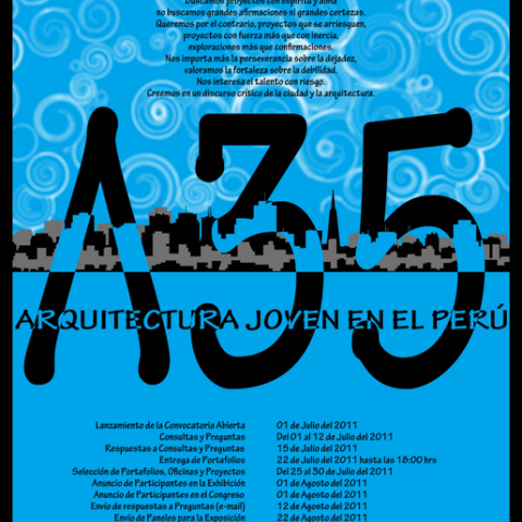 A35: arquitectos menores a treinta y cinco años, busca dar a conocer a todos los nuevos talentos que desarrollan actividades en torno a la arquitectura en el Perú. Es una convocatoria abierta para recibir proyectos e iniciativas en las cuales se encuentren investigando o trabajando. Proyectos de todo tipo son bienvenidos, teóricos o reales, englobando cualquier producción profesional de arquitectura. Se tratará de crear una nueva dimensión, de las primeras exploraciones y afirmaciones de una generación que nace y se hace.