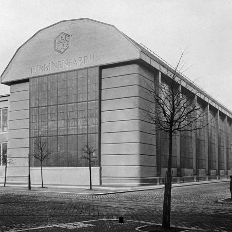 Behrens diseña y construye, entre los años 1908-1910, la Fábrica de Turbinas AEG para la empresa eléctrica Allgemeine Elektricitäts Gesesells (AEG), localizada en Berlín, Alemania. El edificio es uno de los más significativos del protorracionalismo y uno de los primeros en la utilización de elementos industrializados en arquitectura. El edificio industrial cuenta con una planta rectangular y modular y en él se basan los edificios industriales posteriores de Behrens y constituye un hito dentro de esta tipología de edificación. El edificio fue colocado en el extremo sur del complejo existente de AEG, entre las calles Huttenstraße y Berlichingenstraße. Behrens construye un edificio de acero y vidrio que acompañaba las expectativas de su propietario, Emil Rathenau, de un edificio que demuestre su prosperidad. Mientras tanto, Behrens también perseguía la armoniosa tradición de los templos griegos y egipcios, con un claro deseo de celebrar el poder de la industria.