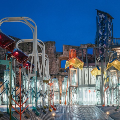 2. La arquitectura se comporta como un fantasma ‘sostenible’. El Castillo de Garcimuñoz es un pequeño municipio y esto implica una limitación en los recursos disponibles. El Gobierno Español ha financiado la reforma principal y el pequeño Ayuntamiento del pueblo ostentará la responsabilidad de su mantenimiento. La ubicación del municipio, justo al lado de la autovia A-3 que une Madrid y Valencia, asegura un gran volumen de visitantes en las épocas estivales. La combinación de escasos recursos y de un flujo de visitantes estacional ha constituido un aspecto crítico en la redacción del proyecto. La decisión más inmediata, que se deriba de estas condiciones, es la minimización del area que requiere aporte energético y la adaptación de los usos a lo largo del año. La mayor parte del espacio útil se usara los días en que la buena climatología y las medidas pasivas adoptadas lo permitan. Este periodo se extenderá previsiblemente los 8/9 meses centrales del año, incluyendo el momento de máxima afluencia de visitantes. En los días más duros del invierno solo se utilizarán de 200 a 250 metros cuadrados del espacio. La mayor parte del área construida desaparecerá en términos de gastos económicos y energéticos. Parte de la arquitectura quedará a la espera de que venga el buen tiempo. En la época estival, el espacio exterior equipado y atemperado acrecenta el programa disponible, alcanzando los 2000 metros cuadrados de superficie para usos culturales. Con este propósito se han incorporado varias técnicas bioclimáticas. El área de menos cota, donde se encuentran las ruinas de un fragmento de una alcazaba musulmana, se cubre con una plataforma constituida por dos capas: una de vidrio y una de entramado metálico. Esta plataforma aprovecha del efecto invernadero en invierno. Sobre la plataforma se disponen chimeneas solares que minimizan el calor en verano y se utilizan como expositores en el nivel superior, de uso museográfico. Las diferentes estrategias bioclimáticas buscan que le mantenimiento del edificio sea muy barato, buscando que pueda cubrirse con la pequeña cuota de entrada y los ingresos derivados de las actividades culturales. El uso general del acero galvanizado, la eliminación sistemática de las uniones soldadas y la aplicación de tratamientos superficiales que garantizan la respiración y la longevidad de todos lo materiales buscan, asimismo, la minimización de los gastos de mantenimiento.