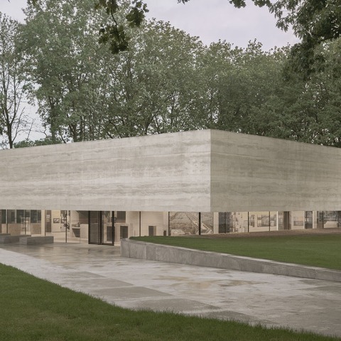 Centro de visitantes del cementerio americano de los Países Bajos por KAAN Architecten. Fotografía de Simón Menges.