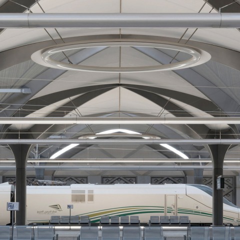 El enlace ferroviario de alta velocidad de 450 kilómetros entre las principales ciudades de Arabia Saudita de Makkah, Madinah, Jeddah y KAEC dio la bienvenida a los pasajeros para el festival sagrado de Eid por primera vez. Las cuatro estaciones a lo largo de la ruta, concebidas como puertas de entrada a cada ciudad, están inspiradas en las antiguas tradiciones arquitectónicas de la región y proporcionan un refugio a la sombra del sol mientras crean una nueva columna vertebral infraestructural para el transporte sostenible en Arabia Saudita.
