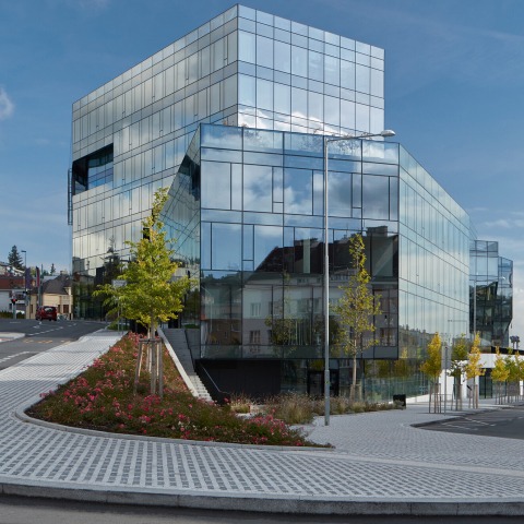 En su mayor parte, los nuevos espacios públicos reciben abundante luz natural y están suficientemente protegidos del ruido de la carretera radial Evropská. Los edificios individuales -cristales- están situados en jardines verdes escalonados, sus vestíbulos de entrada y patios están llenos de exuberante vegetación, con enredaderas que crecen a través de los edificios. Para este proyecto se diseñó una forma experimental de vegetación interior, muy distinta a la típica pared verde. Se erigieron varias estructuras grandes y tridimensionales de postes de madera tosca para transportar plantas epífitas. A continuación, se diseñó un parque verde abierto con árboles crecidos en la parte oriental del solar, equilibrando las superficies edificadas y los espacios verdes.