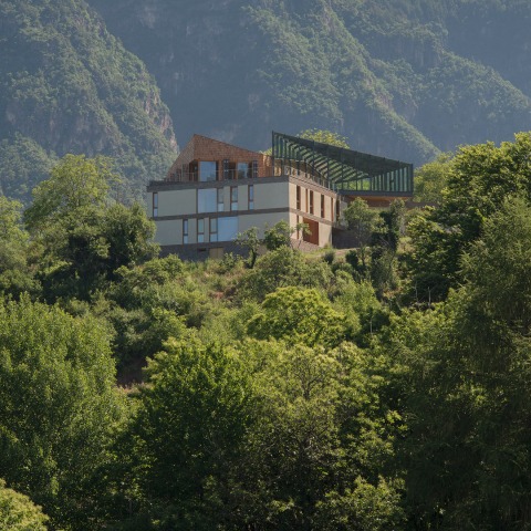 El edificio está situado en el municipio de Laives, cerca de Bolzano, en la ladera de la montaña con unas espectaculares vistas panorámicas y un increíble paisaje a su alrededor. El proyecto trata de preservar el medio ambiente que lo rodea: los edificios construidos aprovechan la planta de los edificios preexistentes, ya demolidos.