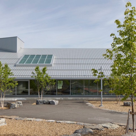Situada en un paisaje vasto y abierto, la escuela aparece como una nueva línea de horizonte, moldeada por el juego de volúmenes y cubiertas. Los pabellones están reunidos alrededor de un patio interior que enmarca magníficas vistas del Monte Shefford. El conjunto ofrece una doble lectura, permitiendo la expresión tanto de la individualidad de cada ciclo como de la comunidad escolar en general. Cada estudiante puede identificarse con su propio pabellón, su propia «casa», y así visualizar su recorrido académico pasado y futuro a través de los ciclos escolares. Con grandes ventanales, tejados voladizos y múltiples puntos de acceso, la arquitectura pretende hacer que el límite entre el interior y el exterior sea lo más permeable posible, conectando así la arquitectura con el paisaje.