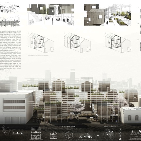 Las viviendas se resuelven de manera eficiente y se promueve la autoconstrucción de una manera no literal. La vivienda es ampliable y modificable dentro de un volumen que está pautado por la propia arquitectura. Una celosía urbana estructura la propuesta como un gran parque vertical y al mismo tiempo actúa de filtro de las viviendas.