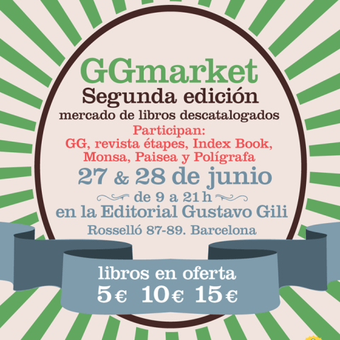 Un mercado de libros descatalogados de arquitectura, diseño, moda, arte y fotografía. Los próximos 27 y 28 de junio, de 9 a 21 h, celebramos la segunda edición del GGmarket en el hall de la Editorial Gustavo Gili (un edificio de finales de los años 50 con premio FAD de arquitectura, situado en el Eixample esquerre de Barcelona).